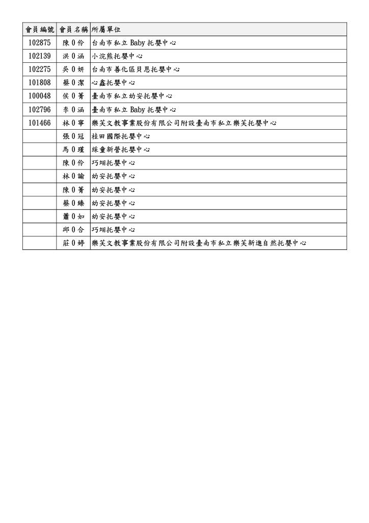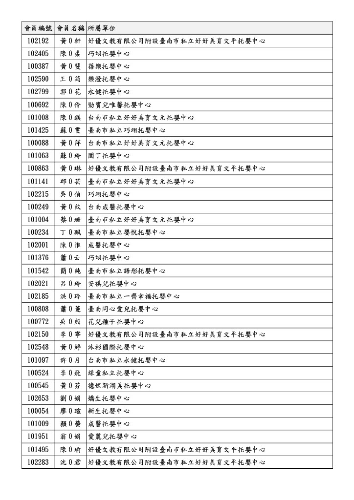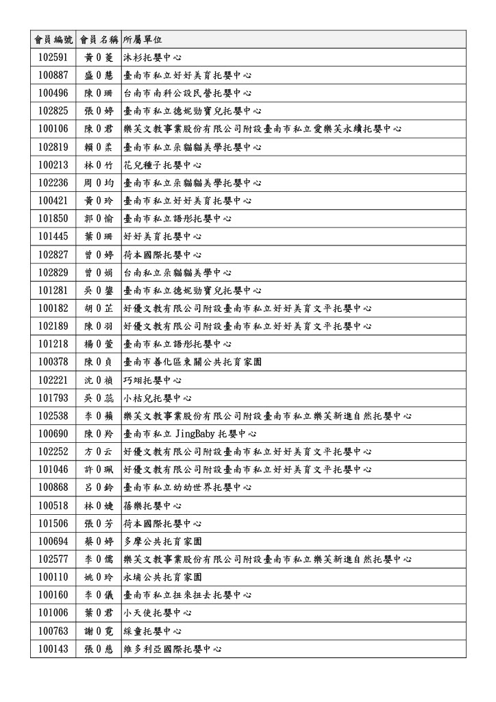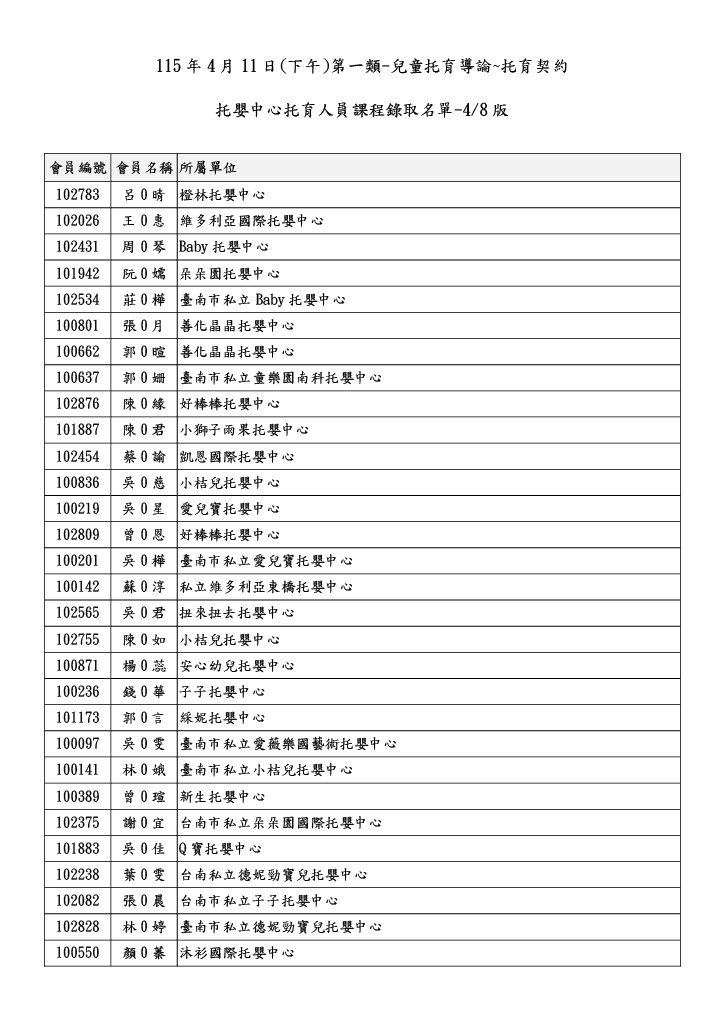 以下是115年度4/11(六)第一類-兒童托育服務導論~托育契約的錄取名單